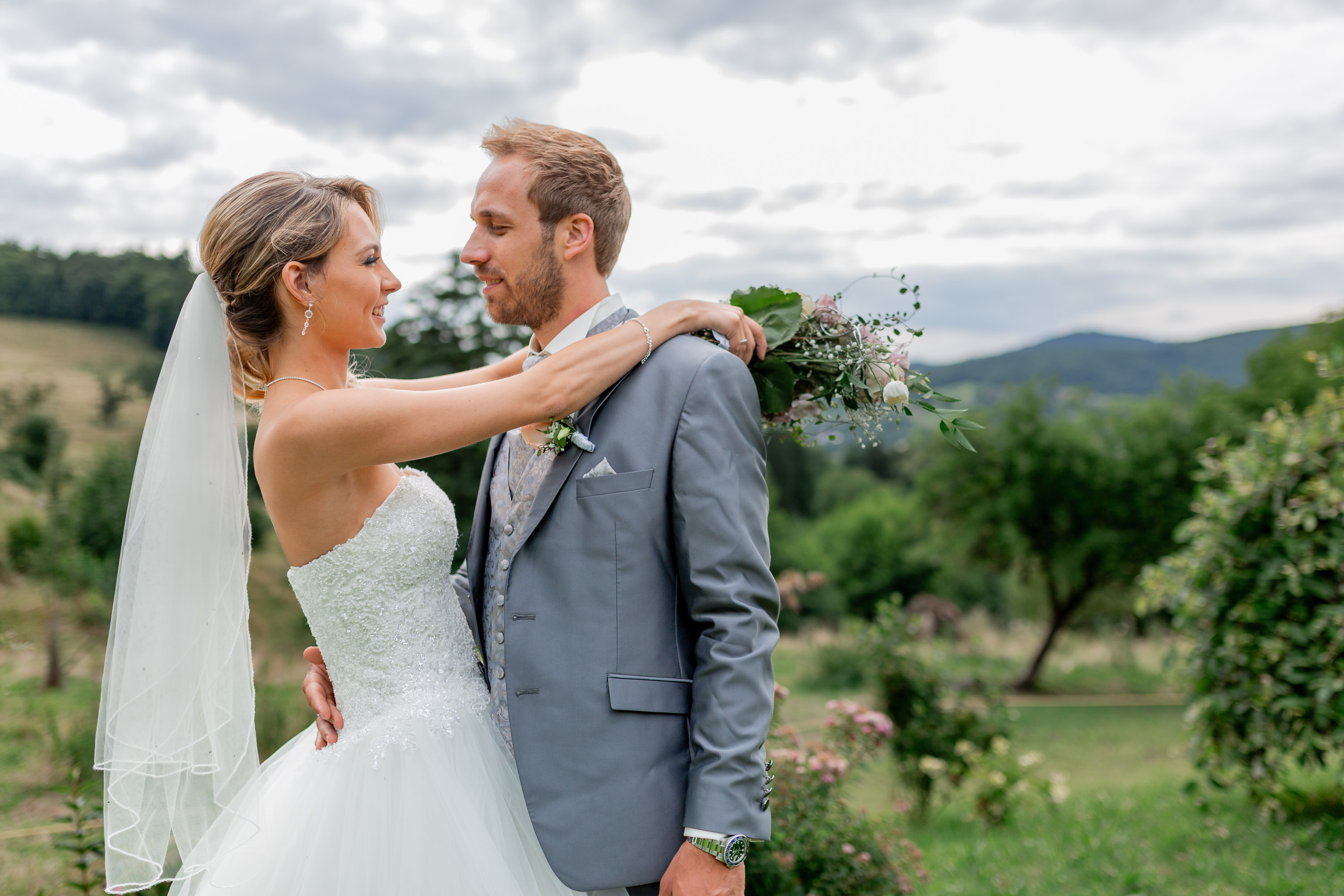 Das Hofgut Hohenstein im Lautertal ist nicht nur eine außergewöhnliche Hochzeitslocation, sondern bietet auch einen großen Garten, den wir hier gleich für das Brautpaarshooting genutzt haben.